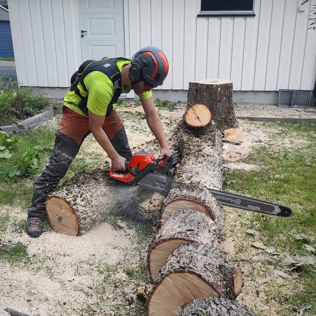 Vi hjelper deg med trefelling og trepleie