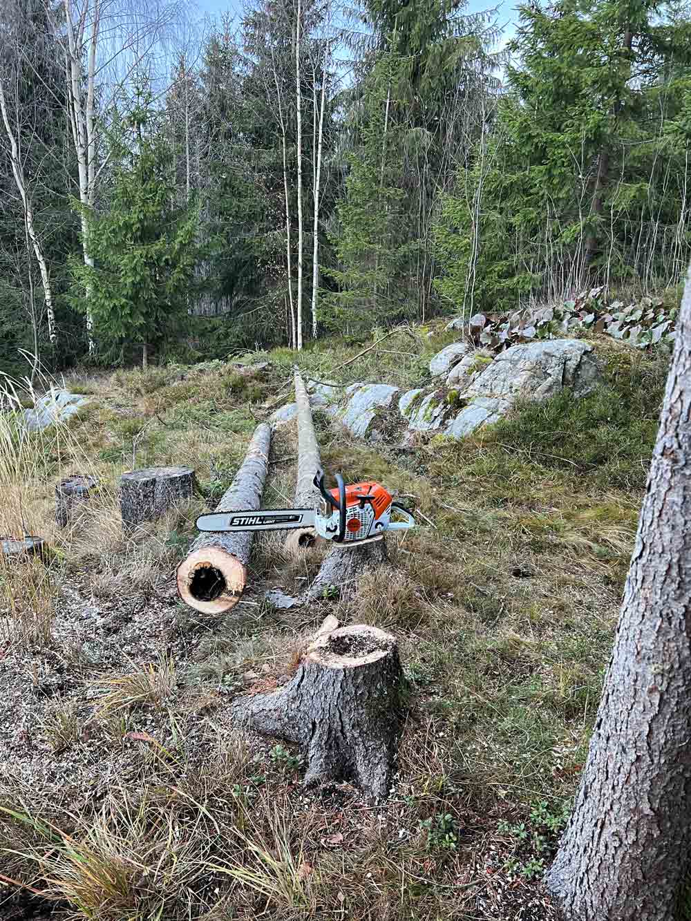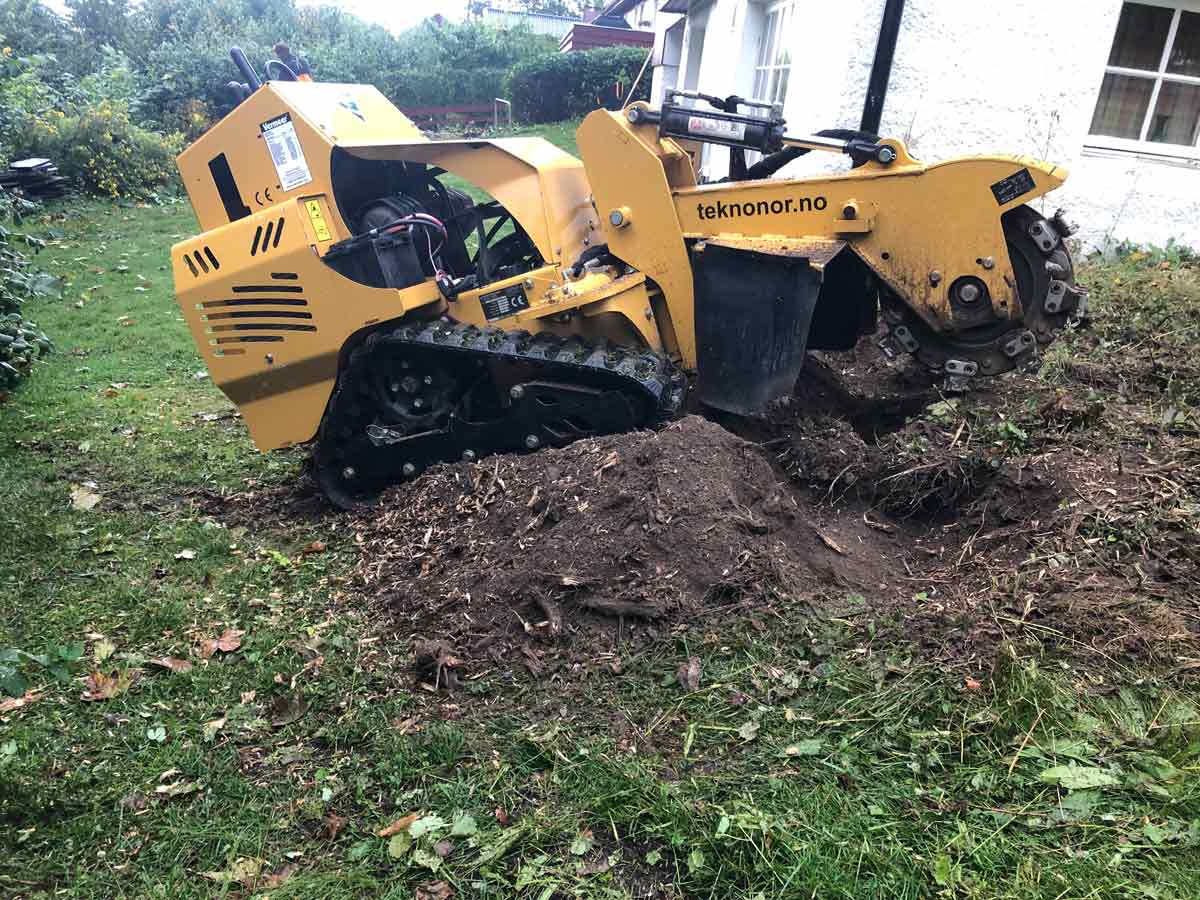 Etter trefelling kan det være nødvendig å fjerne stubben. Vi tilbyr stubbefjerningstjenester som etterlater landskapet rent og klart for nye prosjekter.
